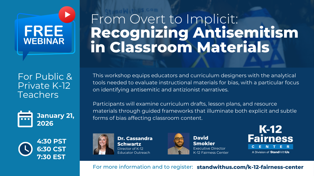 StandWithUs (SWU) is a 24-year-old international non-partisan education organization that inspires people of all ages about Israel, challenges misinformation and fights against antisemitism.